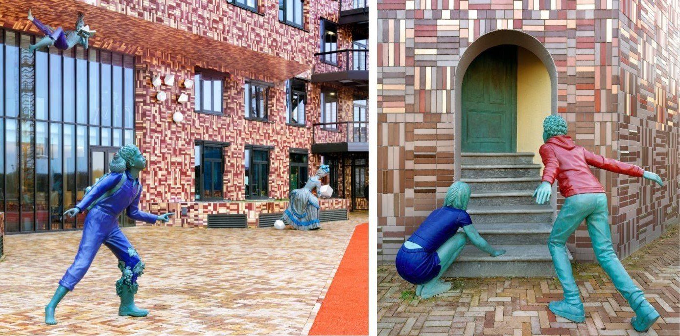 De meer dan manshoge beschilderde bronzen figuren bevinden zich op en rond het plein, dat naast schoolplein van Academie Tien ook buurtplein is. Het schoolgebouw, het hooggelegen plein en de trappen zijn het toneel van de figuren met hun attributen. Ze vormen een eigen wereld en vertellen er een eigen verhaal. De kunstwerken doen een beroep op je nieuwsgierigheid en je verbeelding. Voor sommige van de beelden stonden leerlingen van Academie Tien model.